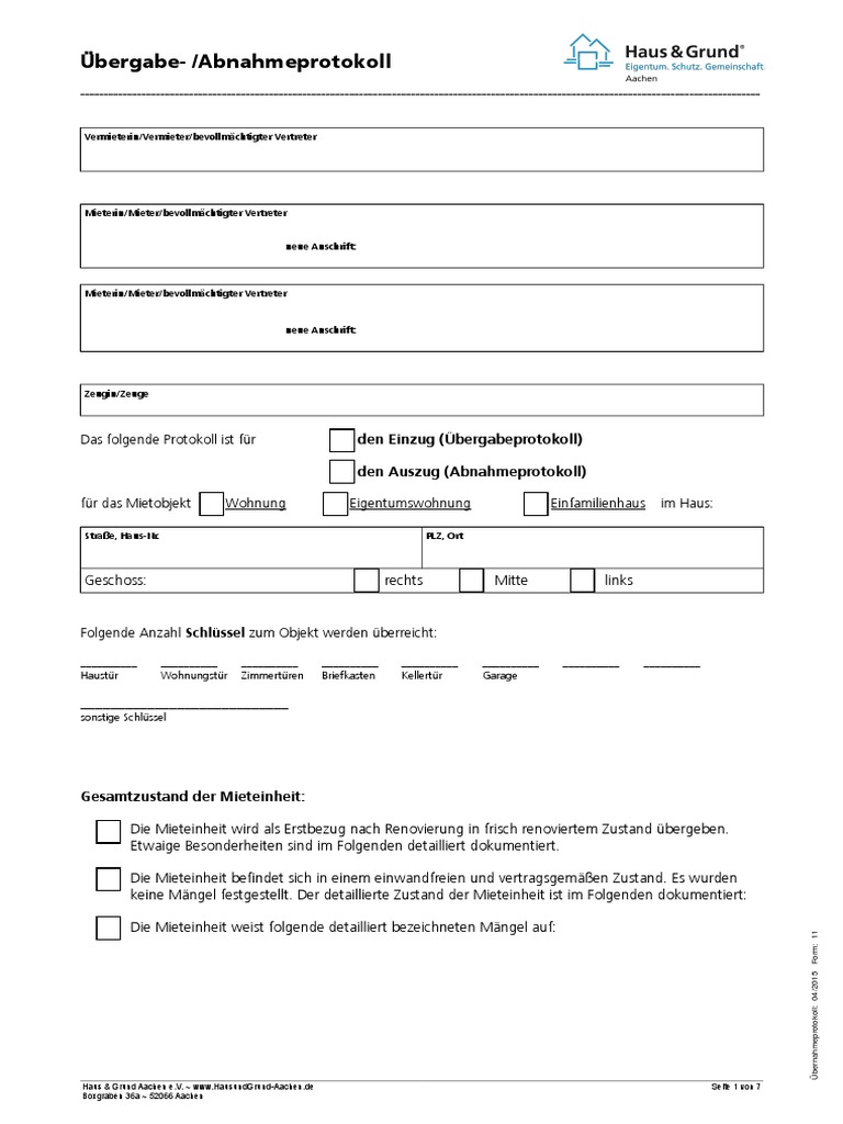 Https Silo Tips Download Unser Service Ihre Ansprechpartner Haus Grund Bremen Am Dobben Bremen from „das lässt sich alles rechtlich sauber klären, wenn bei der wohnungsübergabe ein protokoll aufgesetzt wurde, sagt konrad adenauer, präsident von haus & grund rheinland westfalen. Ein übergabeprotokoll fürs haus ist besonders wichtig, wenn der verkauf der immobilie ansteht. Das übergabeprotokoll ist das zentrale dokument in bezug auf die hausübergabe. Ein hausübergabeprotokoll ist extrem wichtig, wenn es um den verkauf einer immobilie geht. Sie können neben einem exemplar für ihre unterlagen beliebig viele exemplare für die mieterseite ausdrucken. Was in einem hausübergabeprotokoll stehen sollte. Normalerweise bringen sie als verkäufer:in die schlüssel zum übergabetermin mit, führen den finalen rundgang durch, erstellen das übergabeprotokoll und dann auch ein gesondertes schlüsselübergabeprotokoll. Beim auszug aus der mietwohnung gibt es oft streit über schäden.